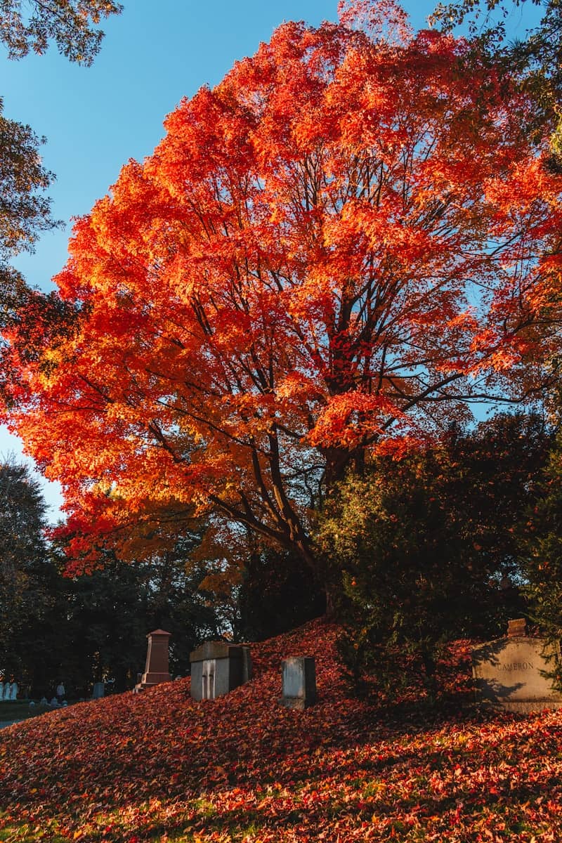The leaves slowly fall, right beneath the tree